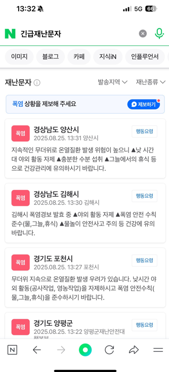 안전안내문자 (폭염·미세먼지 등 생활 안전 관련)
