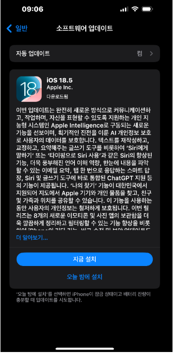 iOS 버전이 오래됨 | 최신 버전으로 업데이트 후 재시도 |