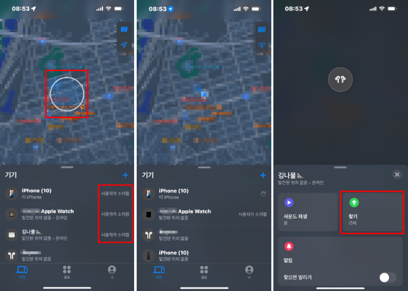 연결 후 ‘나의 찾기’ 앱을 열고 기기 탭에 들어가면