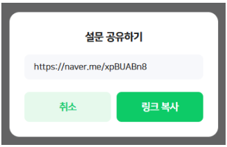 설문 URL을 복사해 카카오톡, 이메일 등에 바로 붙여넣을 수 있어요.