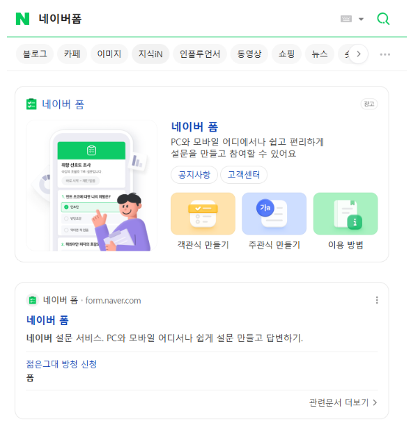 네이버 검색창에 ‘네이버폼’을 입력하면