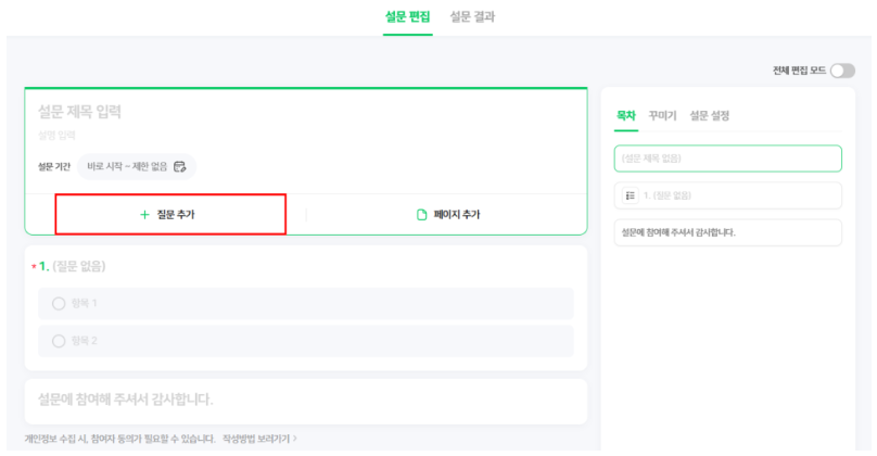 화면 하단의 ‘질문 추가’ 버튼을 눌러