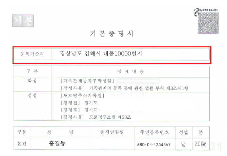 → 아니요! 등록기준지와 주민등록 주소는 별개입니다.