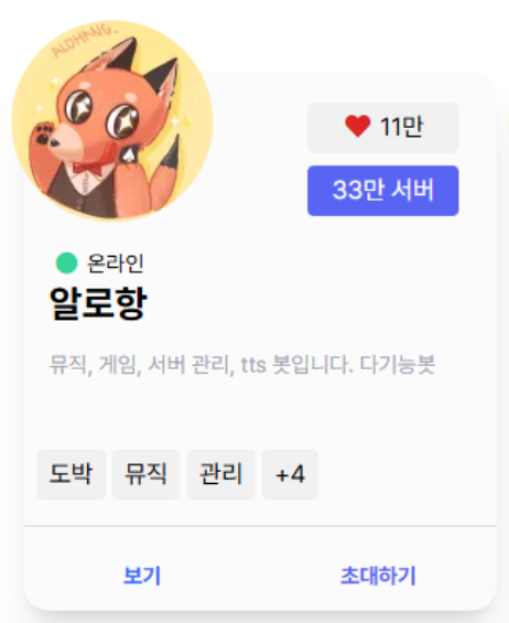 - 서버만의 커스텀 봇 제작 기능 제공
