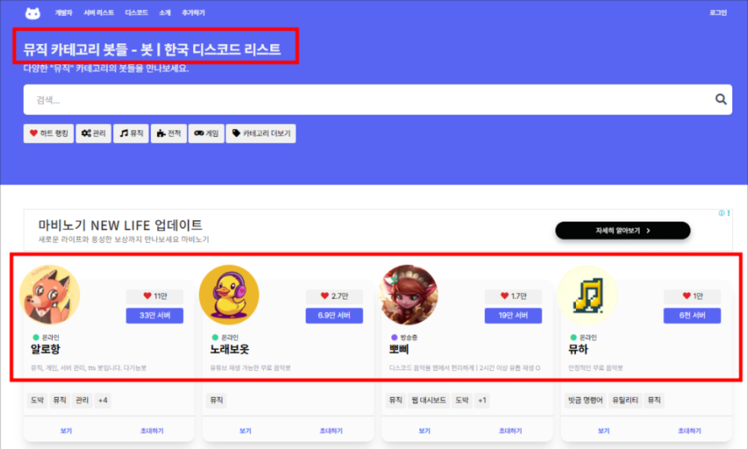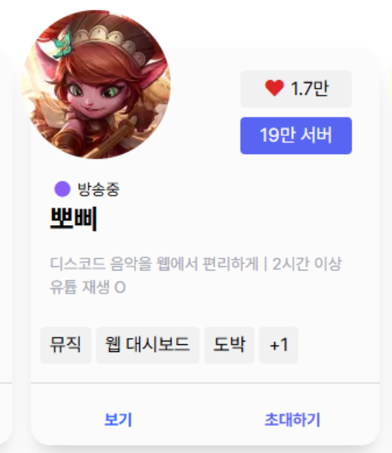 - 음악 + 서버 관리 기능을 함께 원하는 유저 추천