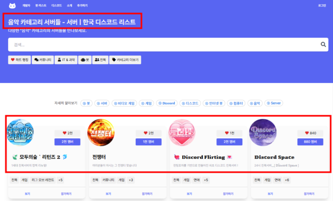 먼저 한국 디스코드 리스트에 접속해
