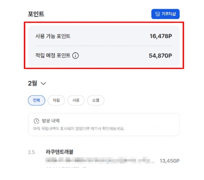 마이페이지 > 상단바 > 포인트 > 기프트샵