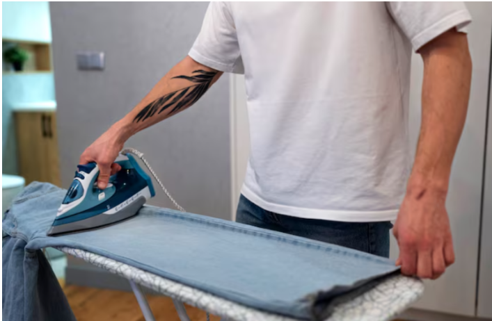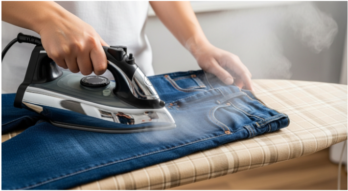 분무기 + 일반 다리미 | 5~7분 | 물분무기, 다리미 | 면, 데님 |