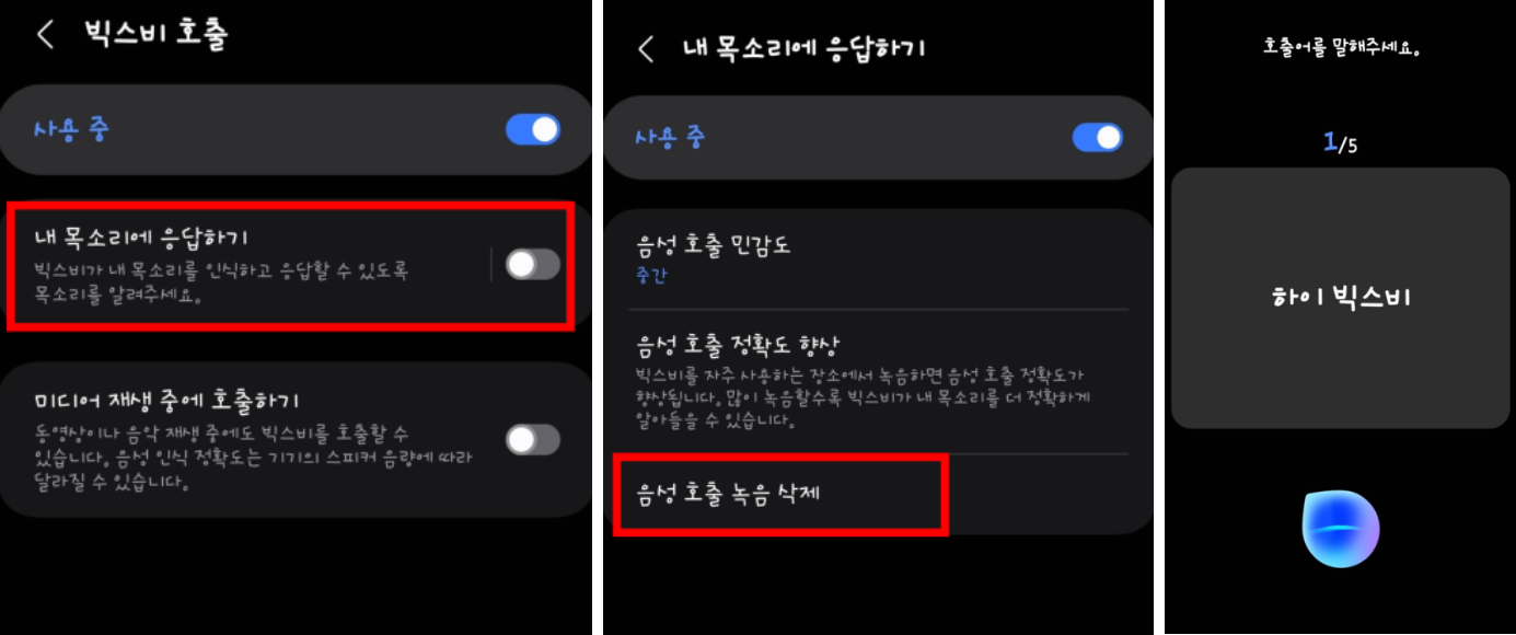 “하이 빅스비” 안 들릴 때 | 음성 등록 삭제 후 재등록 |