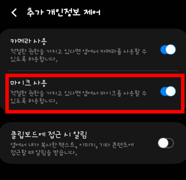 설정 > 권한 > 마이크 사용 허용 여부 확인