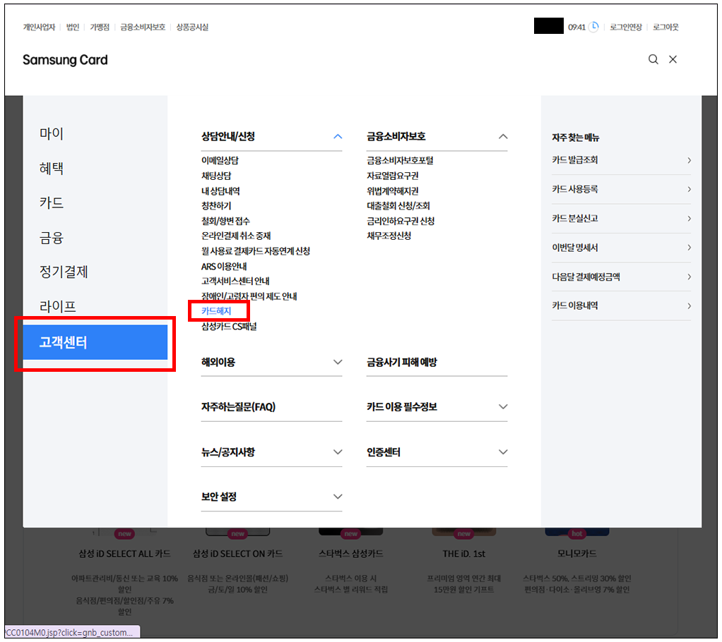 카드 해지하기