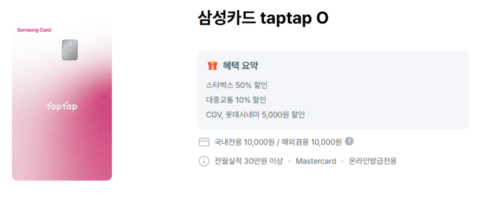 삼성카드 taptap O 주요 카드 혜택