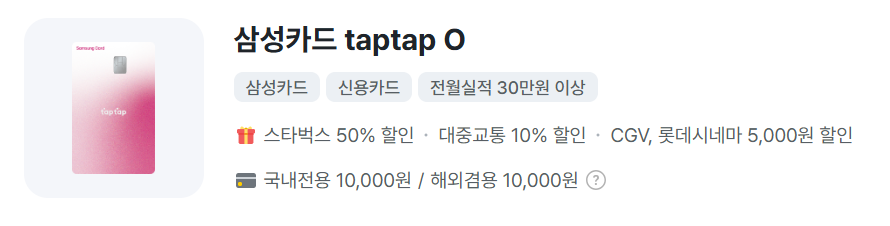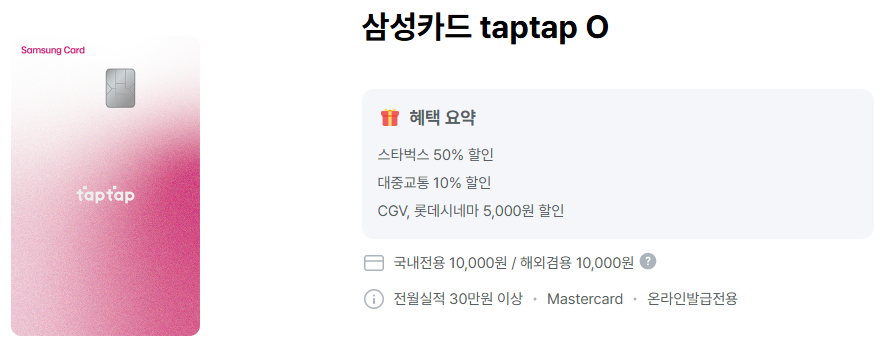 삼성 탭탭오카드(taptap o) 혜택 추천 캐시백 실적 총정리