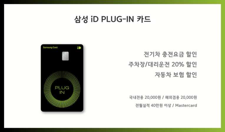 삼성 iD PLUG-IN 카드 전기차 충전 할인 신용카드 조건, 적립 혜택 한눈에