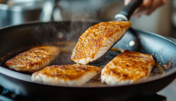 팬에 생선을 올릴 때 식초 2큰술 + 물 100ml를 함께 넣기