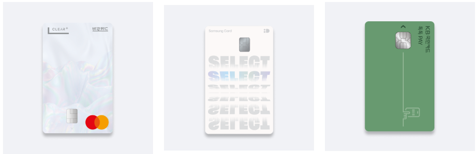 BC 바로 클리어 플러스 | 삼성 iD SELECT ALL | KB국민 톡톡 Pay 카드 |