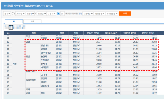 강남 사무실 임대료와 월세