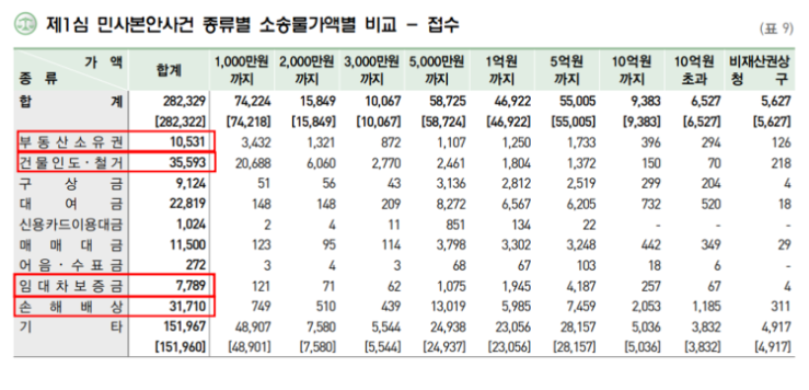 실제로 계약 관련 민사사건은