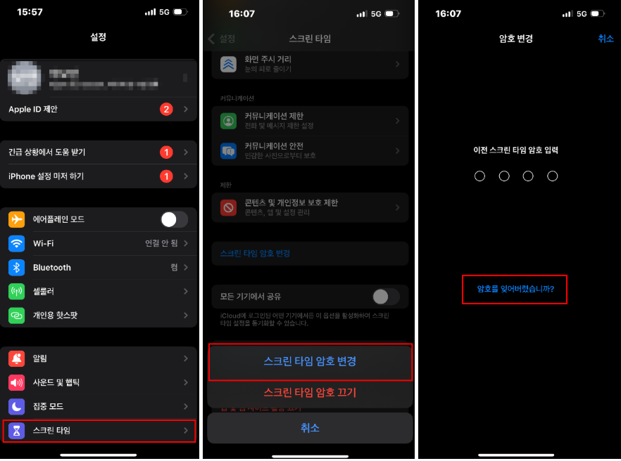 - 스크린타임 암호 변경