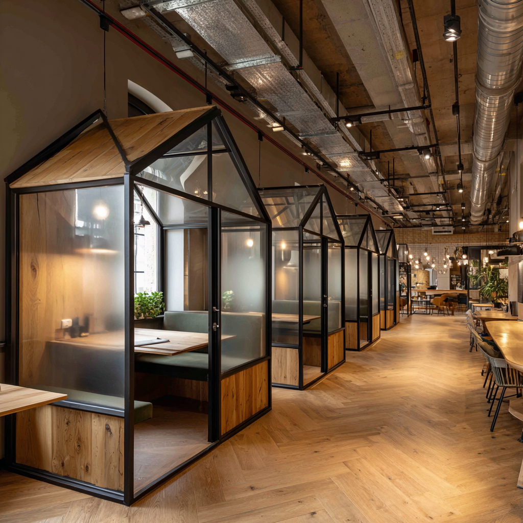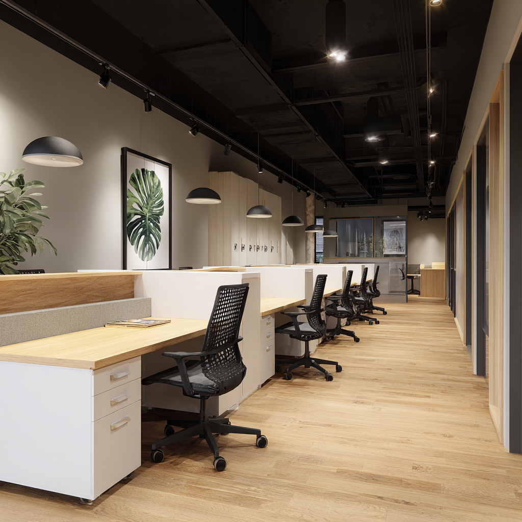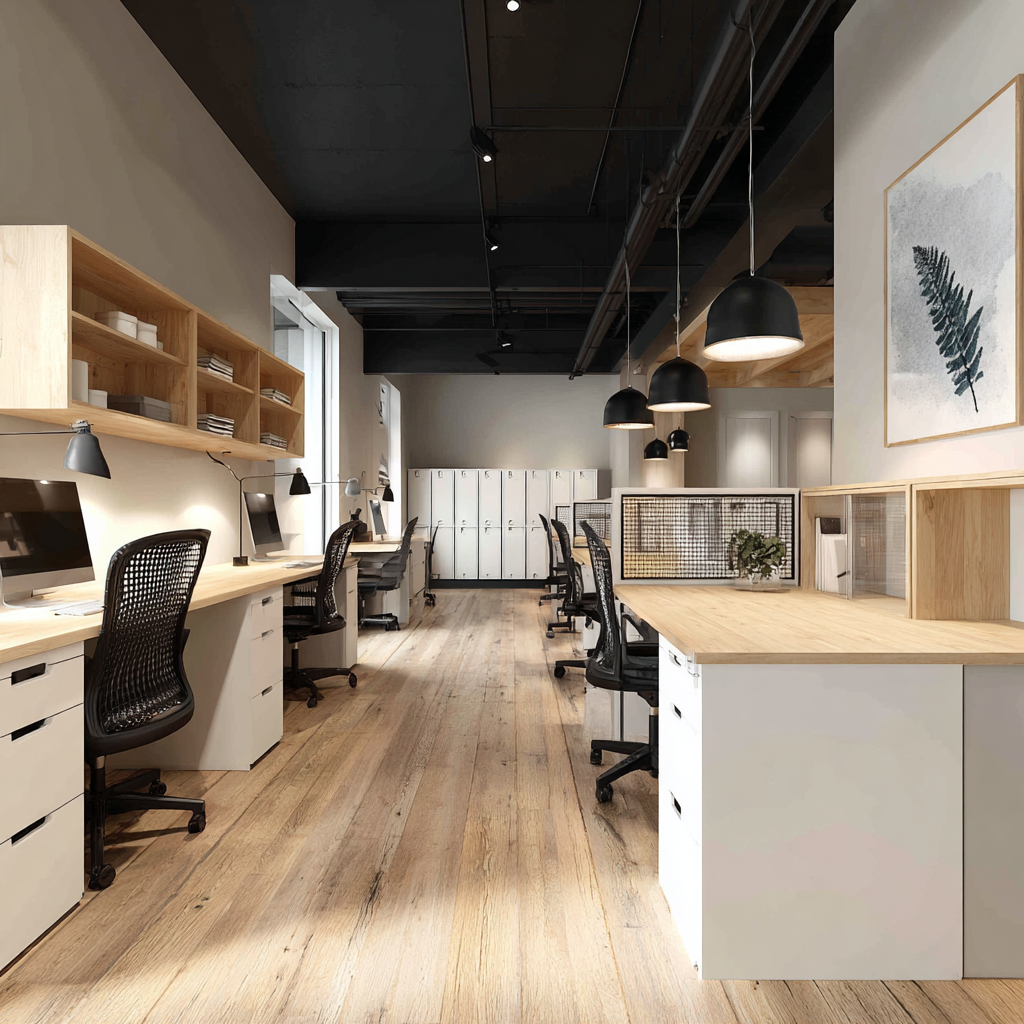 - 오픈존 : 카페형 조명 + 원목 톤
