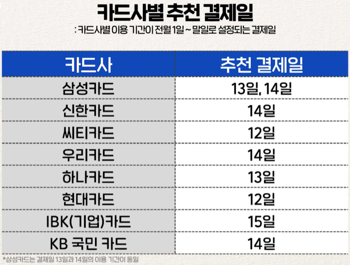 핵심부터 말씀드리면, 카드 결제일은 14일 전후로 설정하는 것이 가장 좋습니다.