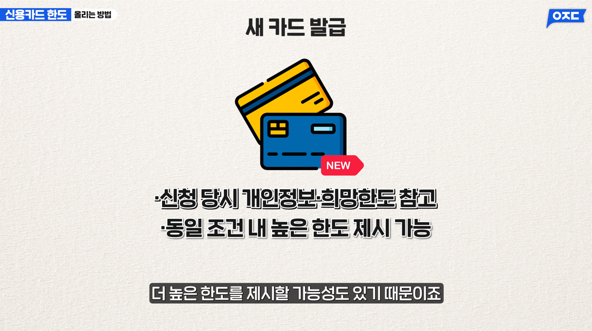 새 카드 발급 시에는 기존 사용 이력보다 신청 당시의 개인 정보와 희망한도를 참고합니다.