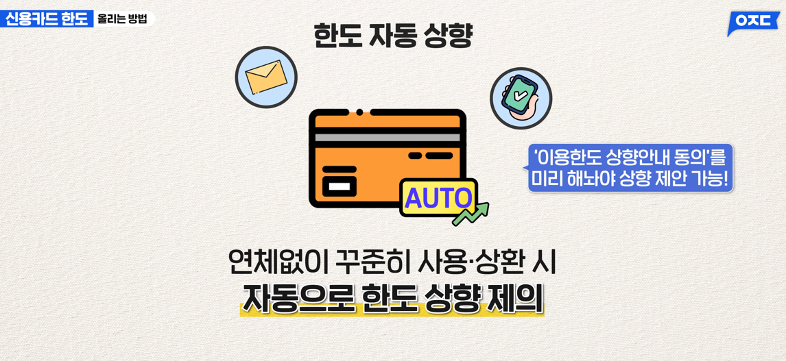 카드사에서 먼저 한도 상향을 제안할 수 있습니다
