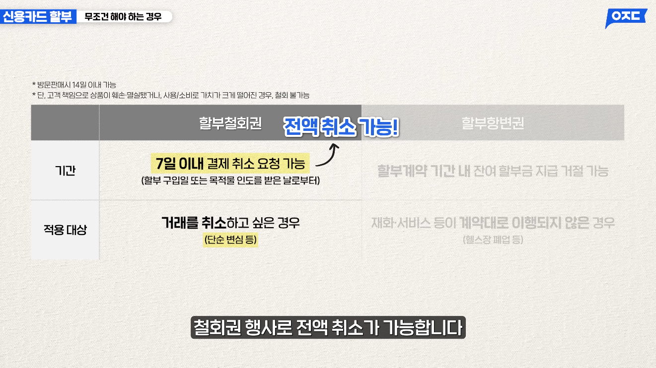 할부철회권 (단순 변심도 OK):
