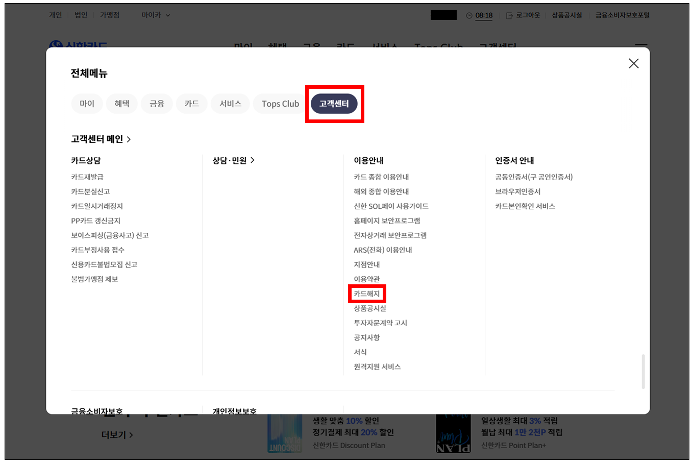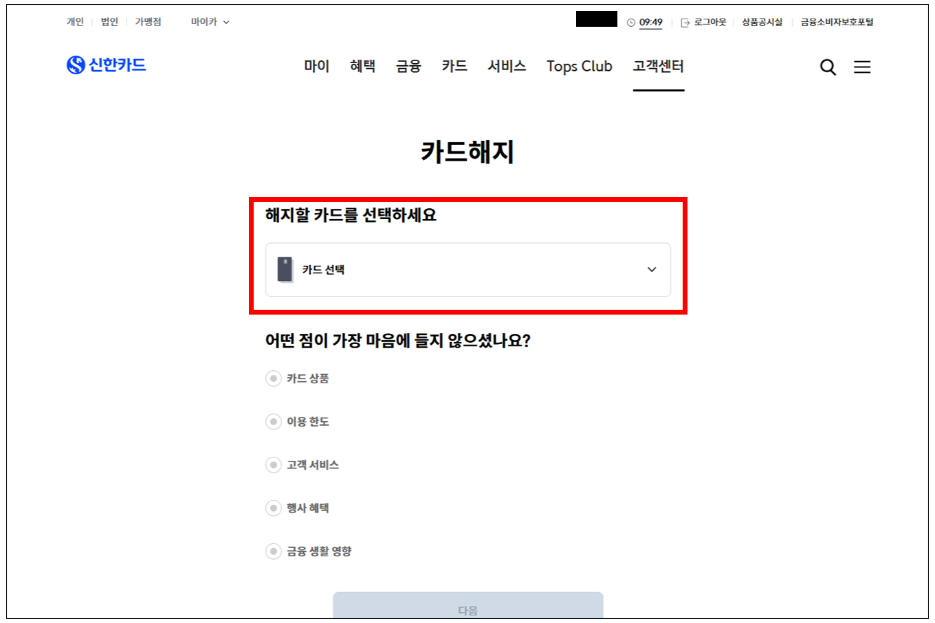카드 해지하기