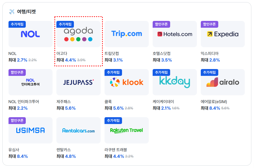 2. 아고다 이외에도 쇼핑 적립 가능!