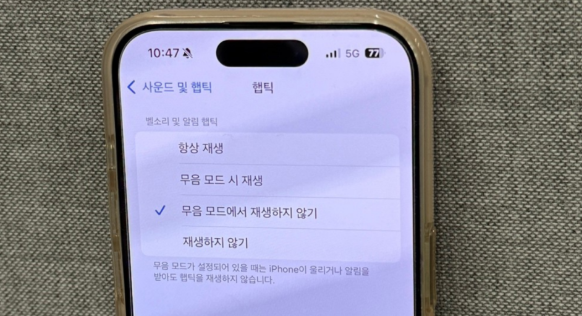 - 소리 / 햅틱 개별로 켜기·끄기 가능