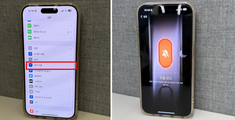 측면 스위치 대신 액션 버튼으로 무음 전환을 하게 됩니다.