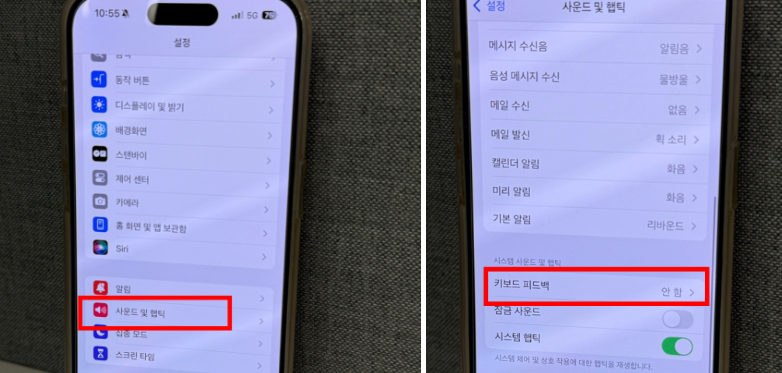 - 설정 → 사운드 및 햅틱→ 키보드 피드백