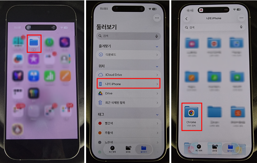 파일 앱 → 나의 iPhone → Chrome 폴더도