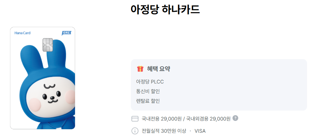 아정당×하나카드 PLCC 신용카드 출시! 연회비 주요 할인 혜택 정리(통신비 렌탈료 피킹률)