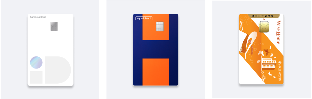 삼성 iD ALL 카드 | 현대카드 H | KB국민 와이즈홈 카드 |