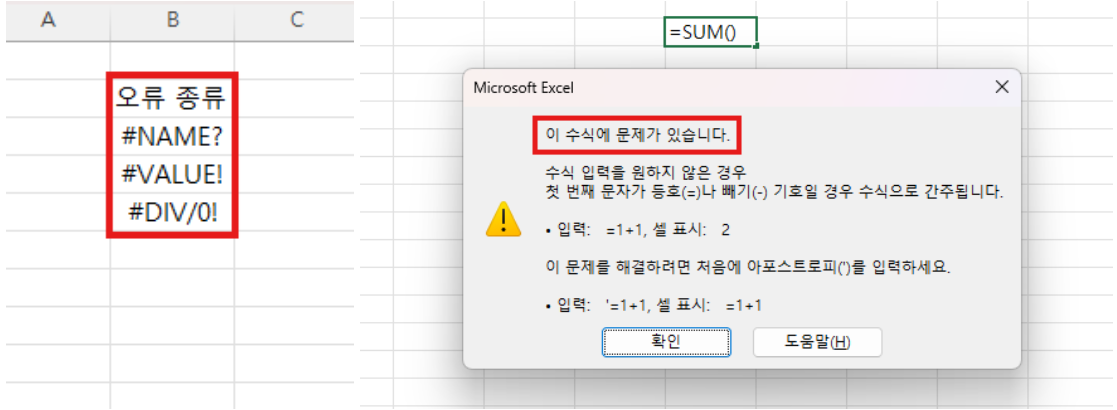 그 외에도 #NAME?, #VALUE!, #DIV/0! 오류는