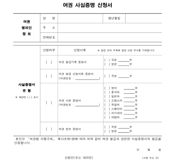 여권사본증명서 | 정부가 여권 원본을 근거로 진위 여부를 공인한 공식 인증 문서 |