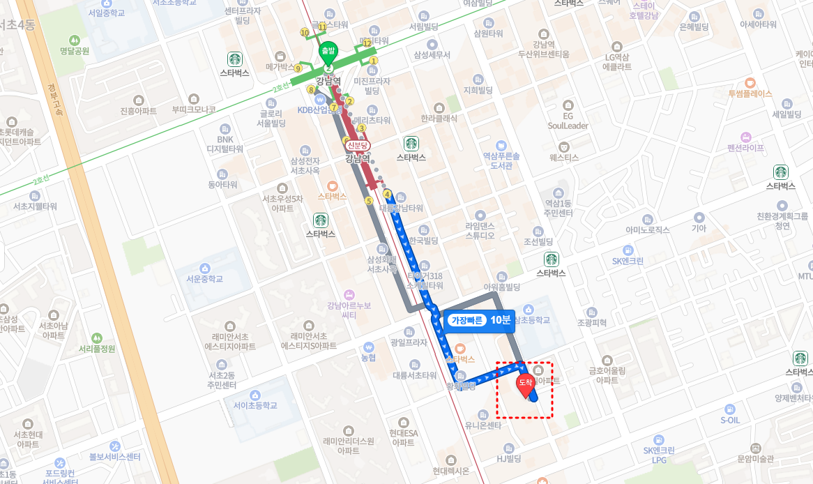 강남권 어디든 환승 없이 이용할 수 있습니다.