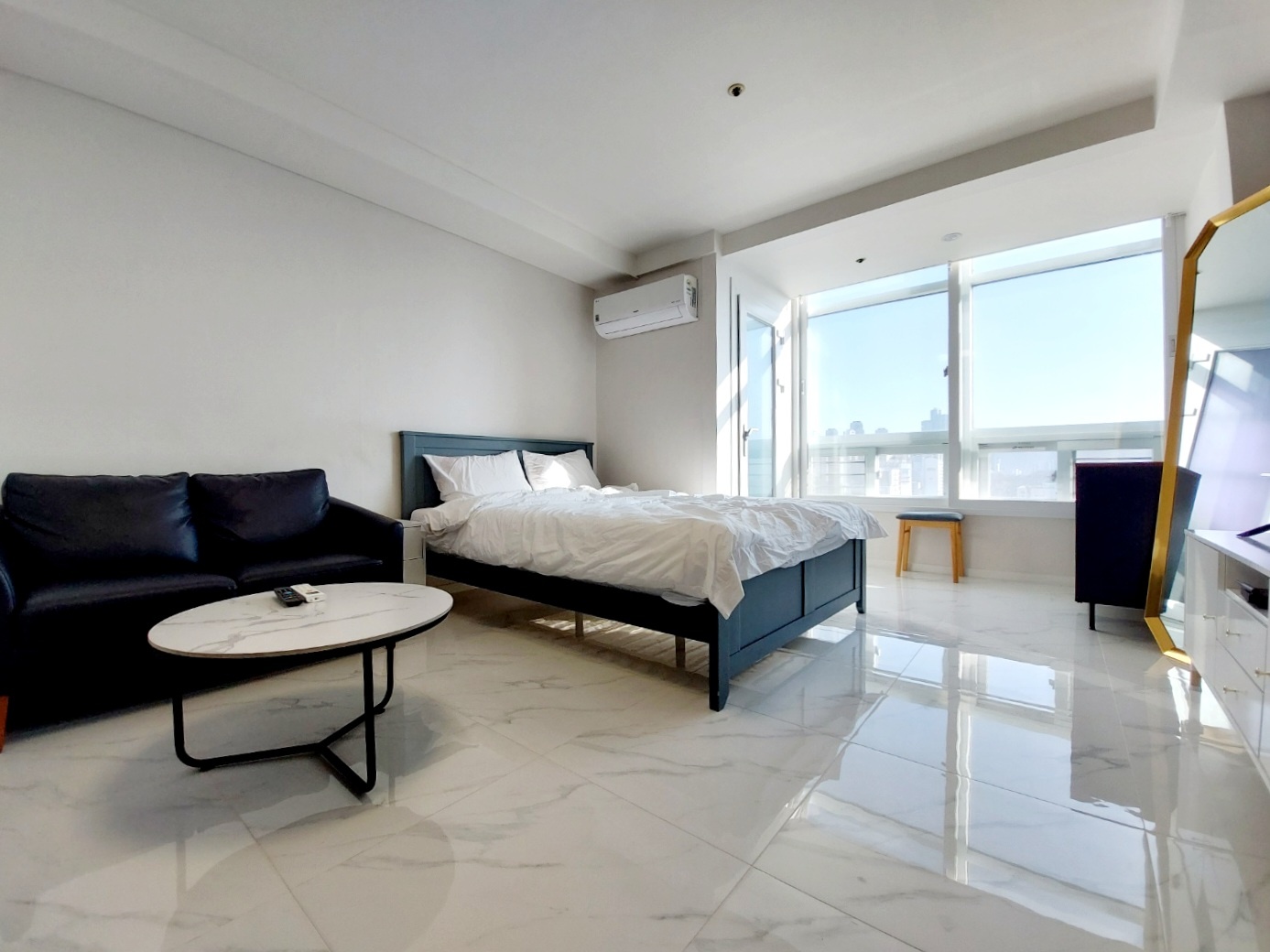 거실 한쪽 면이 대형 통창으로 되어있어