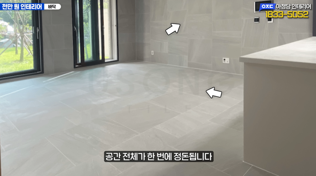 바닥재 | 타일형 강마루 시공 | 약 300만 원 |