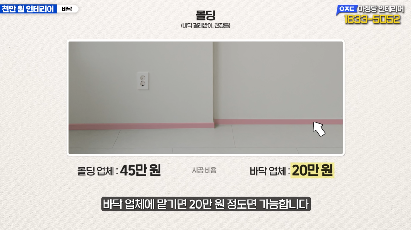 몰딩 | 바닥 업체 연계 시공 | 약 20만 원 |