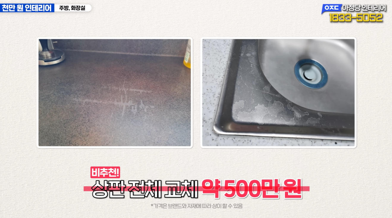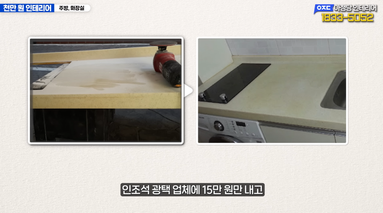 주방 | 인조석 상판 광택 시공 | 약 15만 원 |