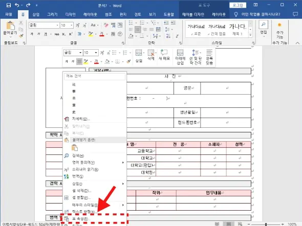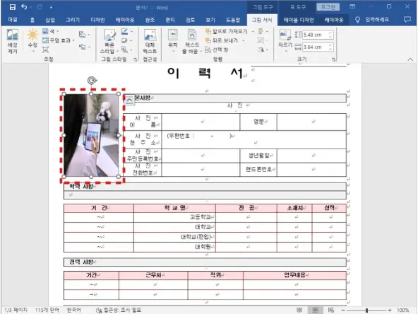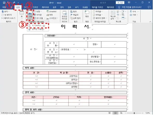 워드 사진 삽입 및 표에 그림 넣는 방법 사회초년생 필수 확인 (feat. 이력서)
