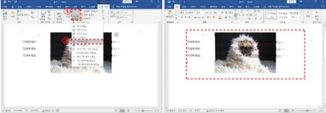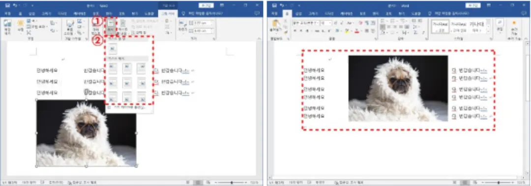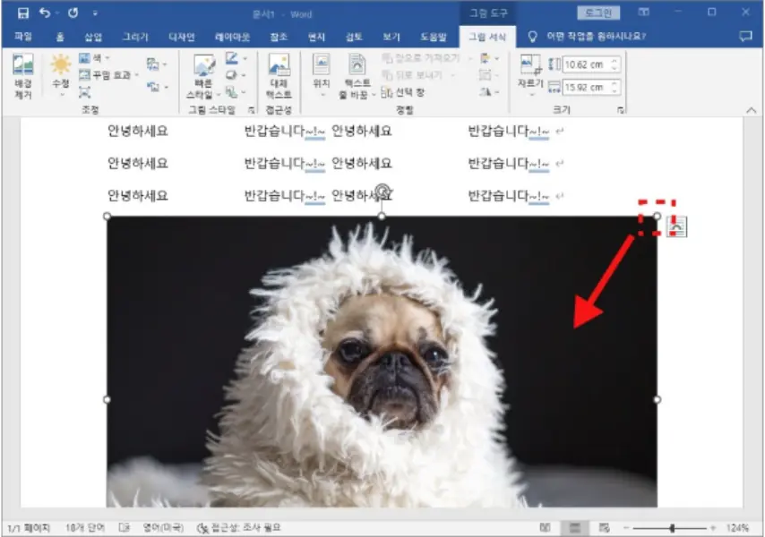 사진을 클릭해 텍스트 줄바꿈 > 텍스트 앞을 선택해 주세요.