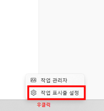 '작업표시줄 설정'을 선택합니다.
