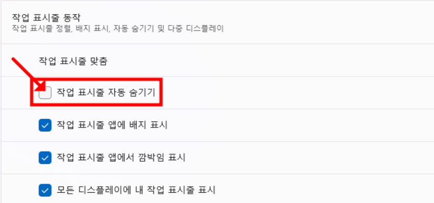 작업표시줄 자동 숨김 기능이 활성화되어 있는 경우,