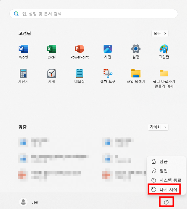 컴퓨터 재부팅만으로도 문제 해결이 가능합니다.