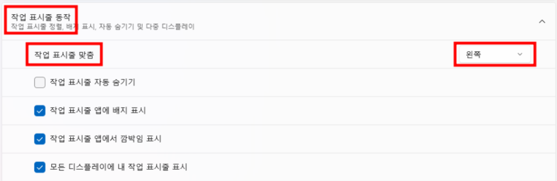 1. 작업 표시줄 정렬 변경 방법