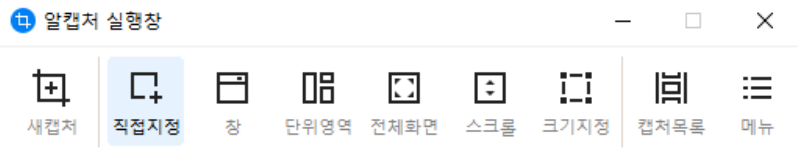 1. PrtSc 키를 누르면 알캡쳐 메뉴 창이 실행됩니다.